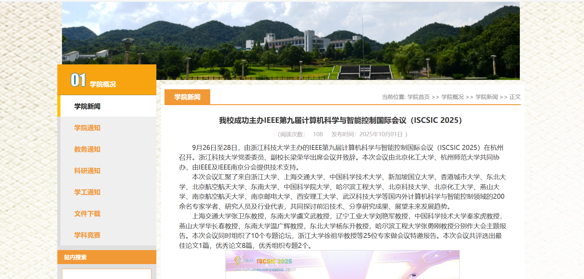 ISCSIC 2025 has been featured on Zhejiang University of Science and Technology's news page. | |